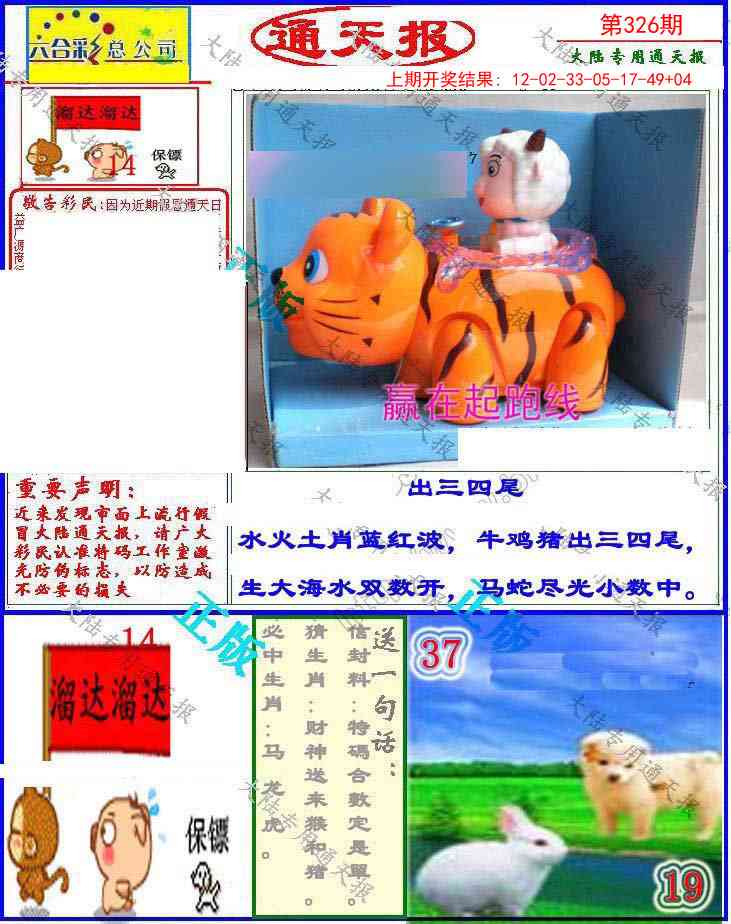 | 325期:内幕①肖+三中三开:虎04准 内幕①肖:【虎】 三中三:【33-05-17】 |